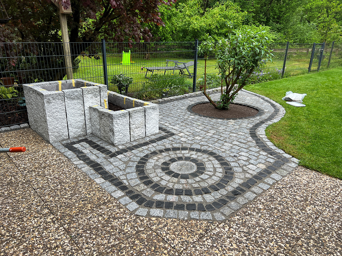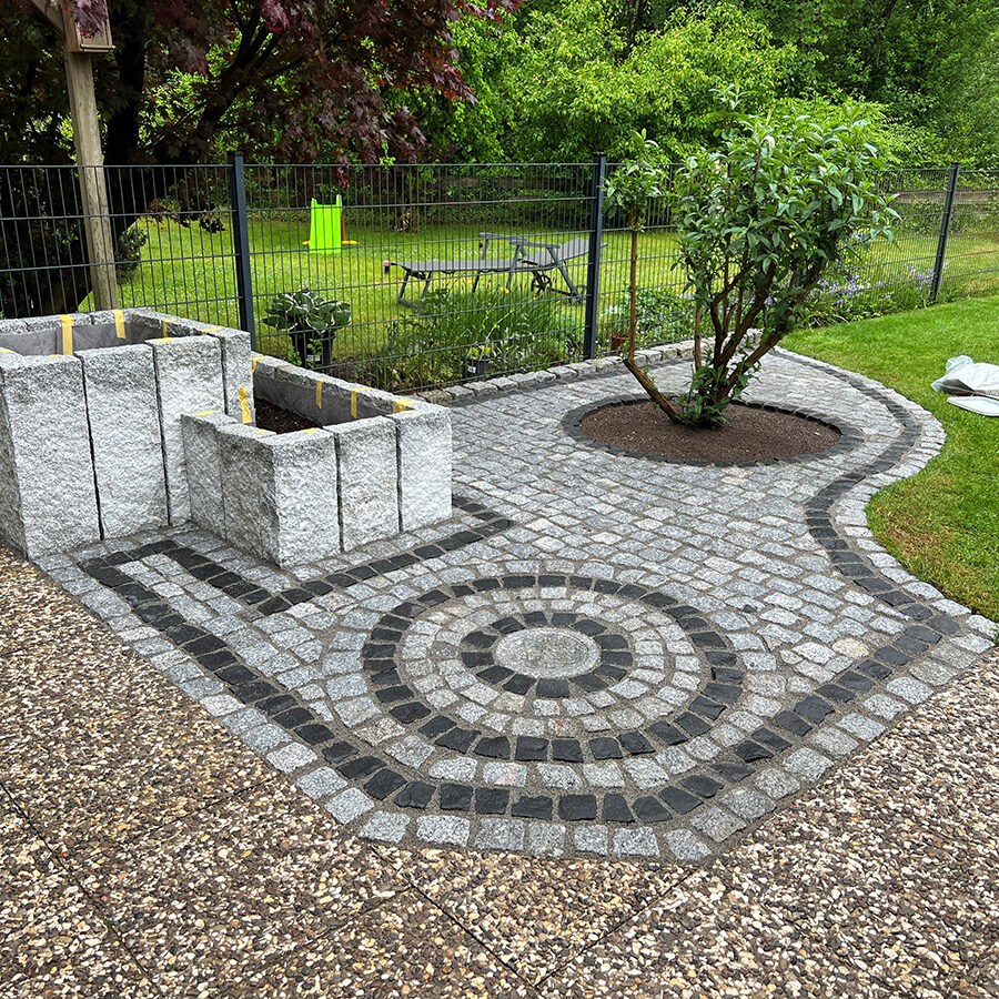 - Verlegung von Granitklein- und Großpflaster, das durch seine Robustheit und zeitlose Eleganz überzeugt und eine langlebige sowie belastbare Fläche schafft